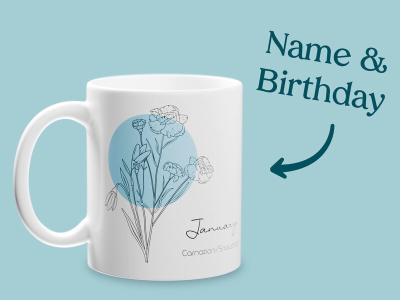 Krus med Månedsblomst & Egen Tekst