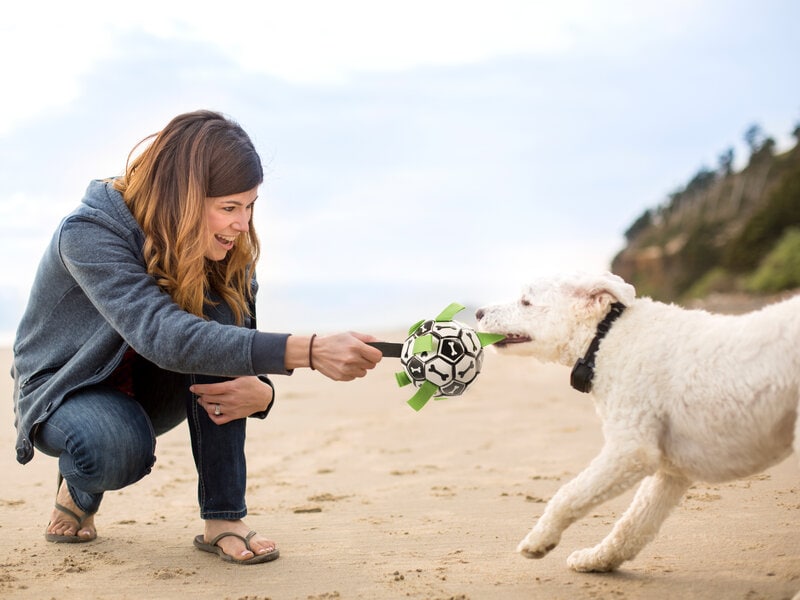 Giv din hund timevis af sjov med vores hundefodbold, designet specielt til at holde din firbenede ven underholdt og aktiv. Denne fodbold er lavet af holdbart materiale, der kan modstå selv de mest energiske lege.
