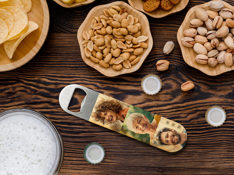 Giv en gave, der virkelig skiller sig ud med vores personlige oplukker med billeder. Denne unikke oplukker er ikke bare et praktisk redskab til at ĺbne flasker, men ogsĺ en fantastisk mĺde at vise dine minder pĺ.