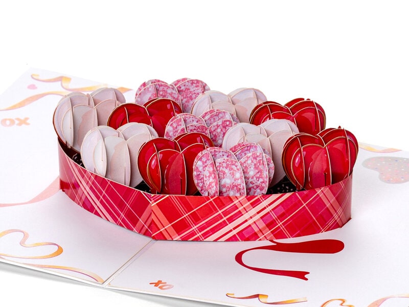 Pop Up-kort - Hjerter i Æske