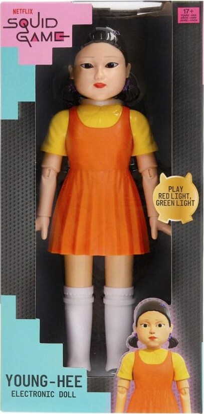 Uanset om du vil have den til at pryde din samling eller til leg, vil Young Hee dukken bringe glæde og underholdning. Giv dig selv muligheden for at bringe en del af Squid Game-universet ind i dit hjem!