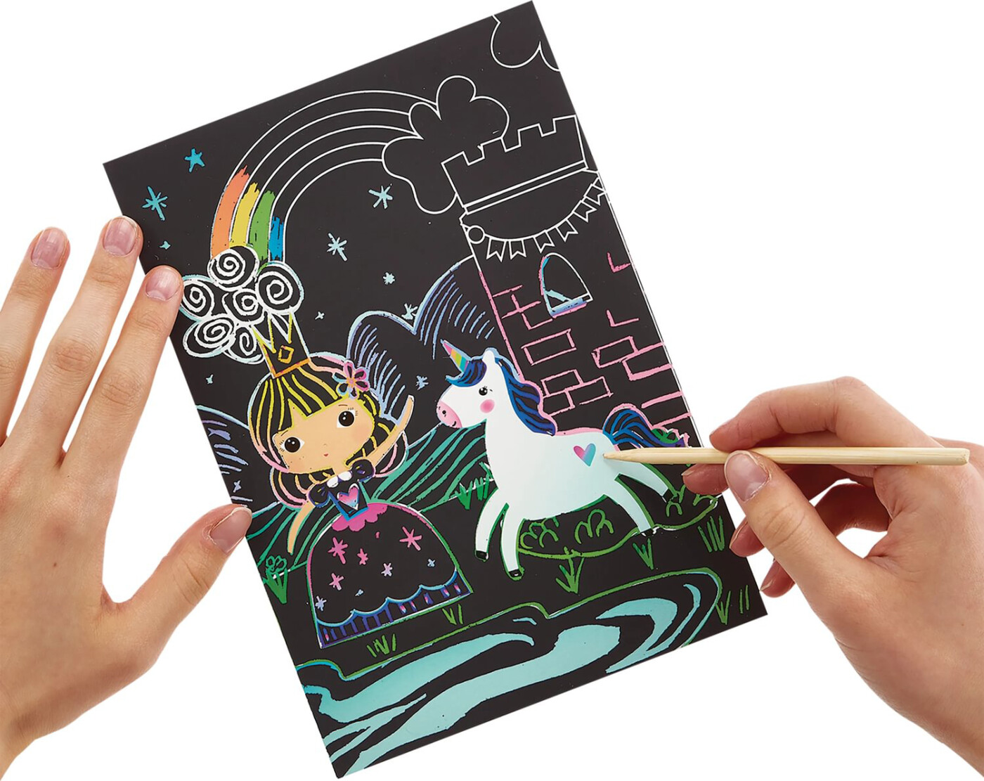 Ridsekortene er ideelle til både doodling og mere detaljerede kunstværker. De kommer med en ridse-overflade, der giver mulighed for at afsløre skjulte farver og mønstre, når man ridser dem. Dette gør det til en sjov aktivitet, der holder børnene underholdt i timevis.