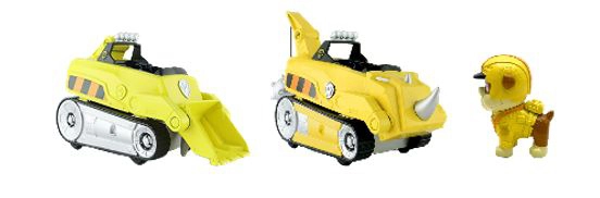 Rubbles køretøj kan transformeres til redningstilstand på en spændende måde. Tryk på PAW-mærket på køretøjet for at dreje skovlen og afsløre næsehornshornet, åbn derefter rummet bag på køretøjet og løft kranarmen for at bruge nedrivningskuglen og fuldføre