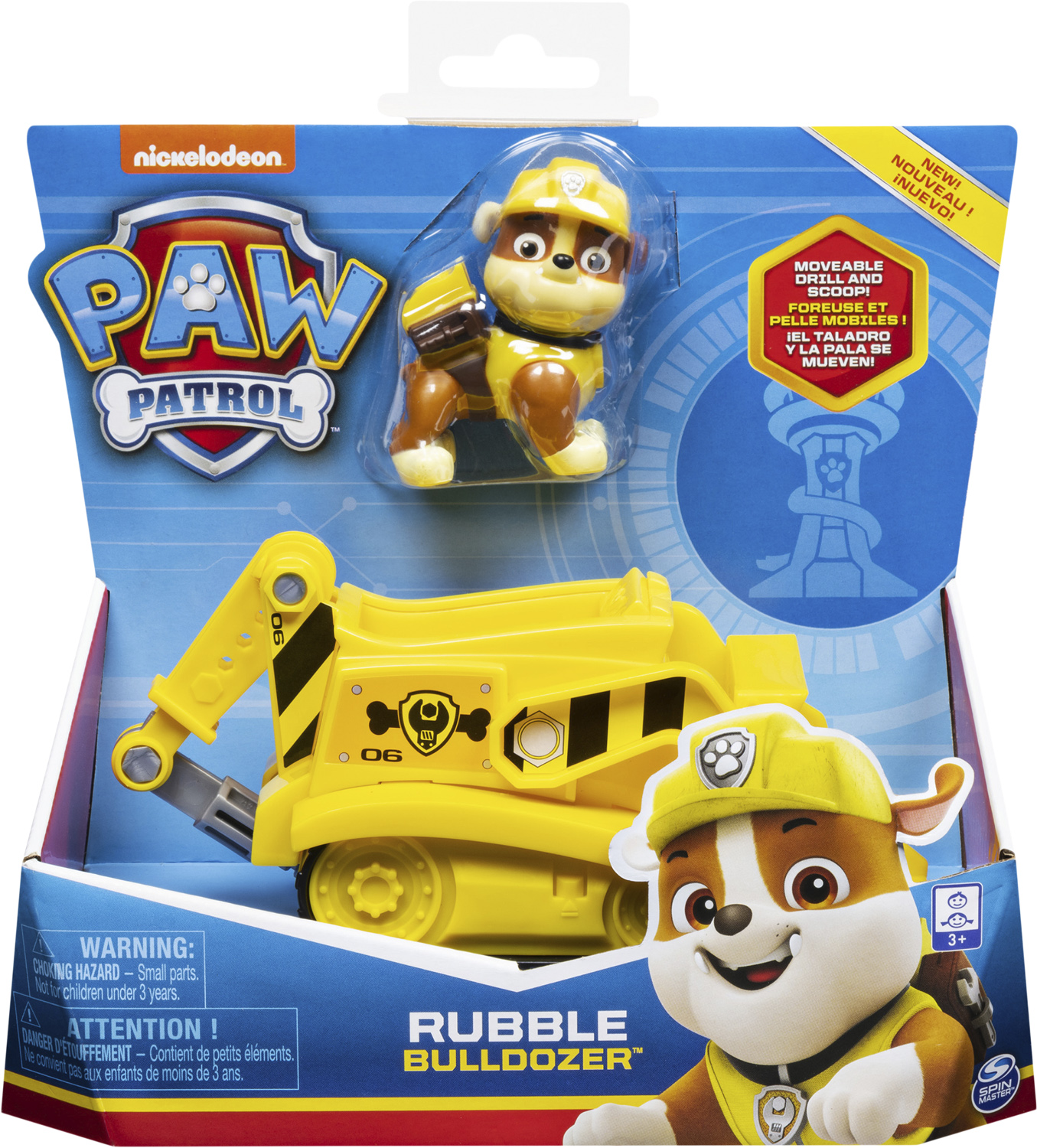PAW Patrol er i gang med deres redningskøretøjer! Tag med Rubble på action-fyldte missioner i hans bulldozer! Når der opstår problemer, placerer du Rubble figur inkluderet i førersædet og kører til undsætning på rigtige, fungerende larvefødder og en bevæg