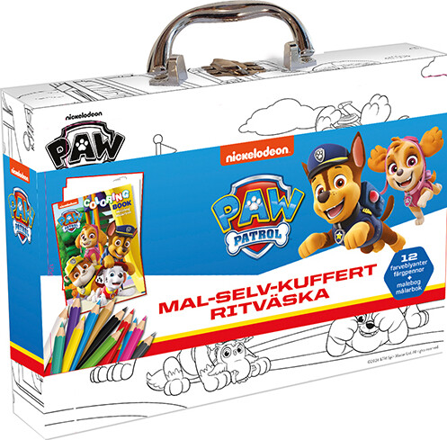 Flot mal-selv-kuffert med malebog med de populære vovser fra Paw Patrol. Der medfølger 12 flotte farveblyanter. Kuffertens overflade er af papir, så børnene også kan farvelægge selve kufferten.