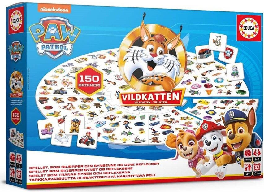 Vildkatten er et sjovt selskabsspil for hele familien, nu med Paw Patrol-tema. Hvem finder det rigtige billede først? Der er 150 billedkort i dette spil. Antal spilere: 1-6. Anbefalet alder: Fra 5 år.