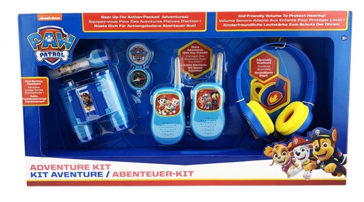 Sæt med sjovt tilbehør fra Paw Patrol, som du kan have med dig, når du skal ud på eventyr (og vil lytte til musik samtidigt). Pakken indeholder kikkert, lommelygte, kompas, walke-talkie og komfortable høretelefoner med volumebegrænsning. Perfekt til både indendørs og udendørs brug. Anbefalet alder: Fra 3 år.