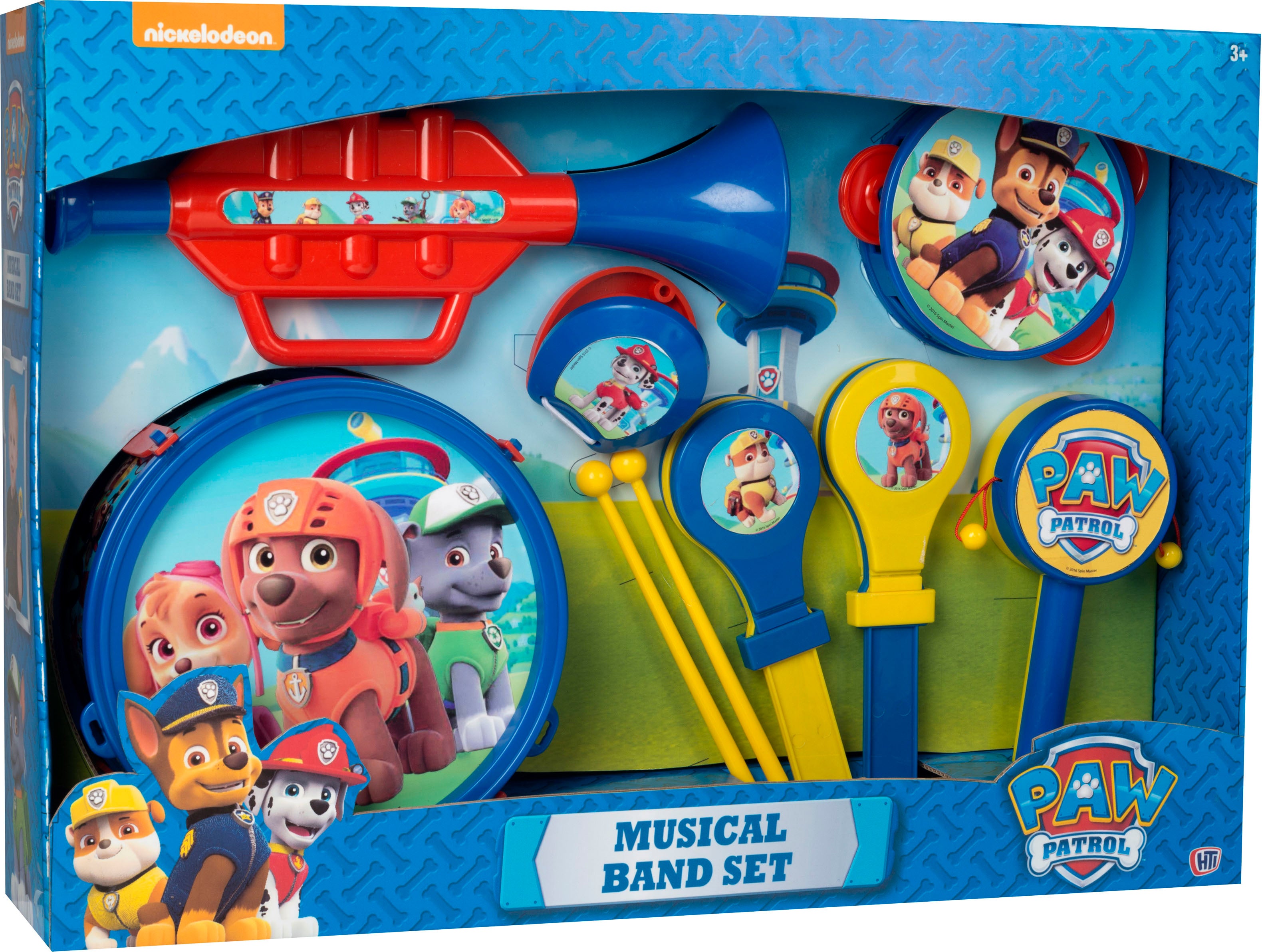 Musiksæt fra Paw Patrol. Perfekt til den lille musikant. - Indeholder: 1 trompet, 1 tamburin, 1 rytmeinstrument, 2 kastagnetter, 1 tromme, 2 trommestikker. - Paw Patrol-motiv. - Lav dine egne melodier. - CE-mærket. - Anbefalet alder: Fra 3 år. - Plastik.