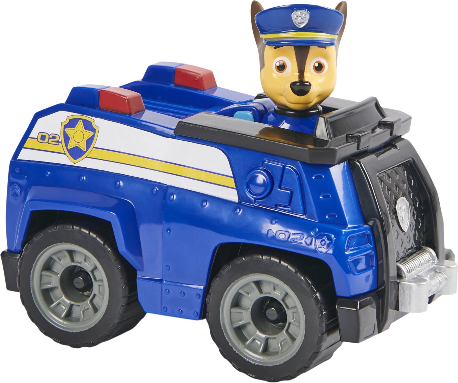 PAW Patrol er i gang med deres redningskøretøjer! Tag med Chase på action-fyldte missioner i hans patruljevogn! Når der opstår problemer, placerer du Chase figur inkluderet i førersædet og kører til undsætning på rigtige, fungerende hjul! Med sine autenti
