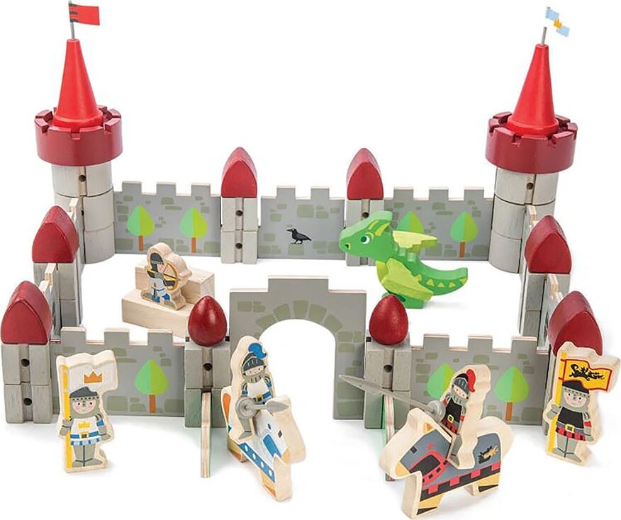 Skab din fantasiverden med Tender Leafs Dragon Castle. Sættet indeholder røde og blå soldater med forskellige stillinger, heste at sidde på, spyd, en buegang, hække og en babydrage. Dette...