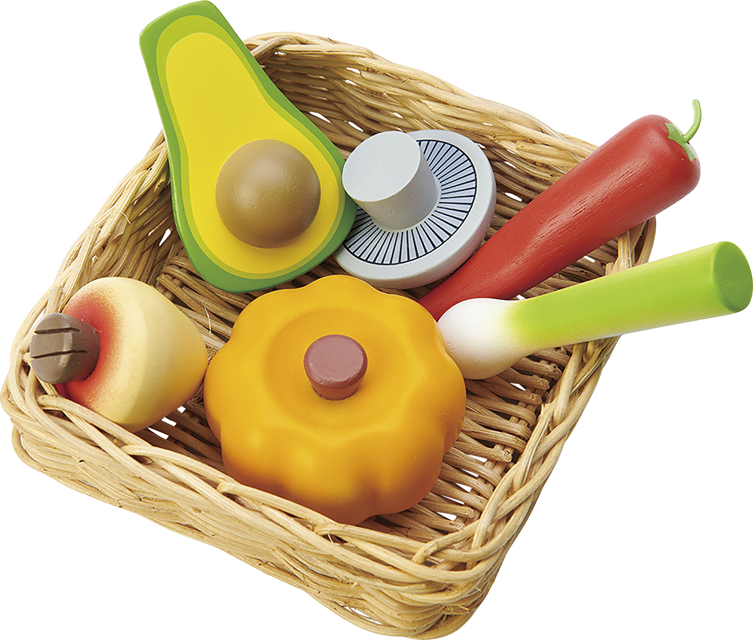 Håndlavet fletkurv med 6 forskellige grøntsager i træ.Indhold: Flettet kurv, græskar, majroe, champignon, chili peber, avocado og porre.Materiale: TræProdukt: 15,5 x 15,5 x 5,5 cmEmballage: 16 x 5,5 x 16,2 cmAlder: 3-5 år
