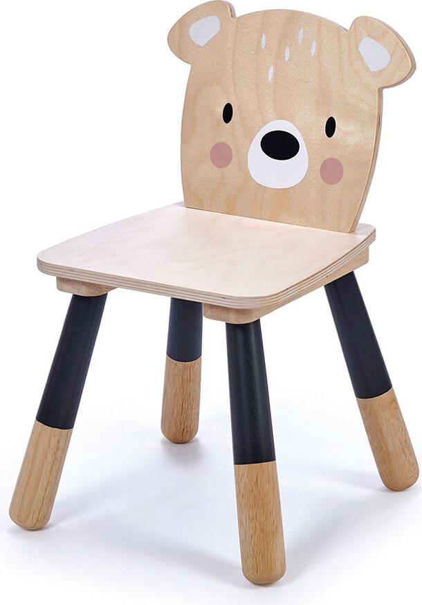 Børnestol i krydsfiner og gummitræ med ryglæn med bjørneillustration. Designet til at inspirere...