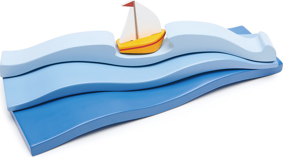 Tre blå bølger af massivt træ, der kan bruges som en del af åben leg. Der medfølger en lille...