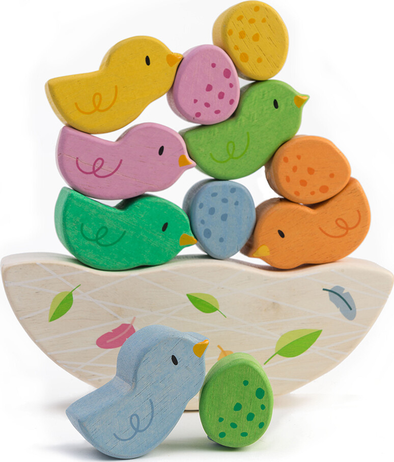Balance- og stablespil. Sæt de små fugle og æg på det gyngende balancebræt og pas på, at de...