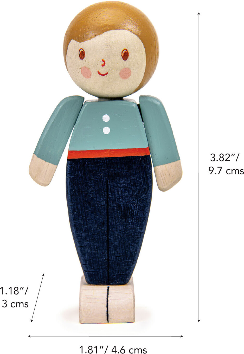 Trædukken Ivory Father har leddelte arme og et muntert, påmalet ansigt. We Are Family dukkeserien...