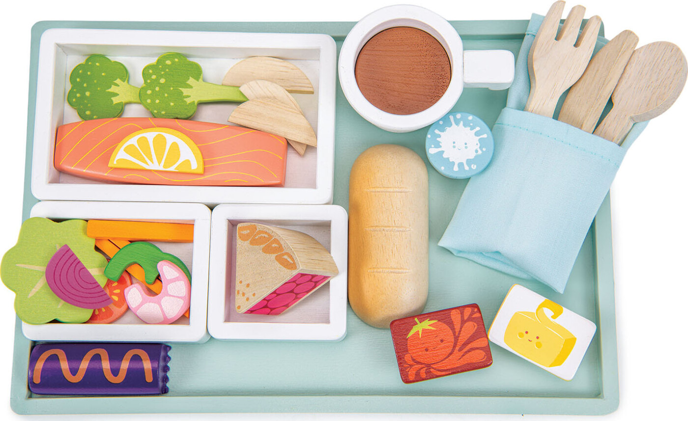 Legemad serveret i luften som flymad på bakke med 3 måltider, serviet og bestik! Der medfølger et...