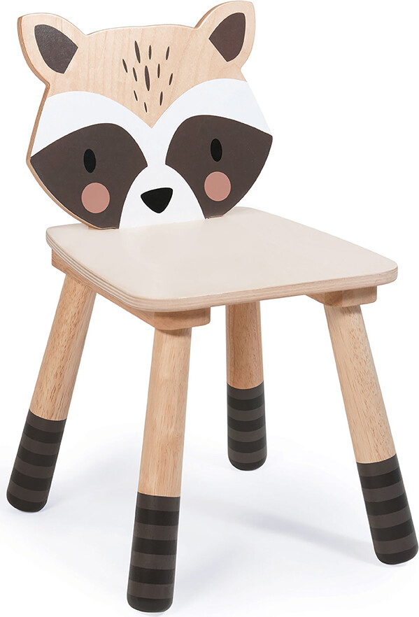Børnestol i krydsfiner og gummitræ med ryglæn med vaskebjørnillustration. Designet til at...