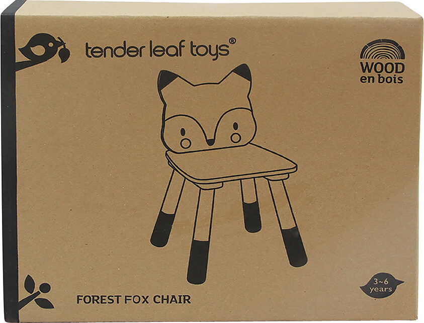 Børnestol i krydsfiner og gummitræ med ryglæn med illustration af ræv. Designet til at inspirere...