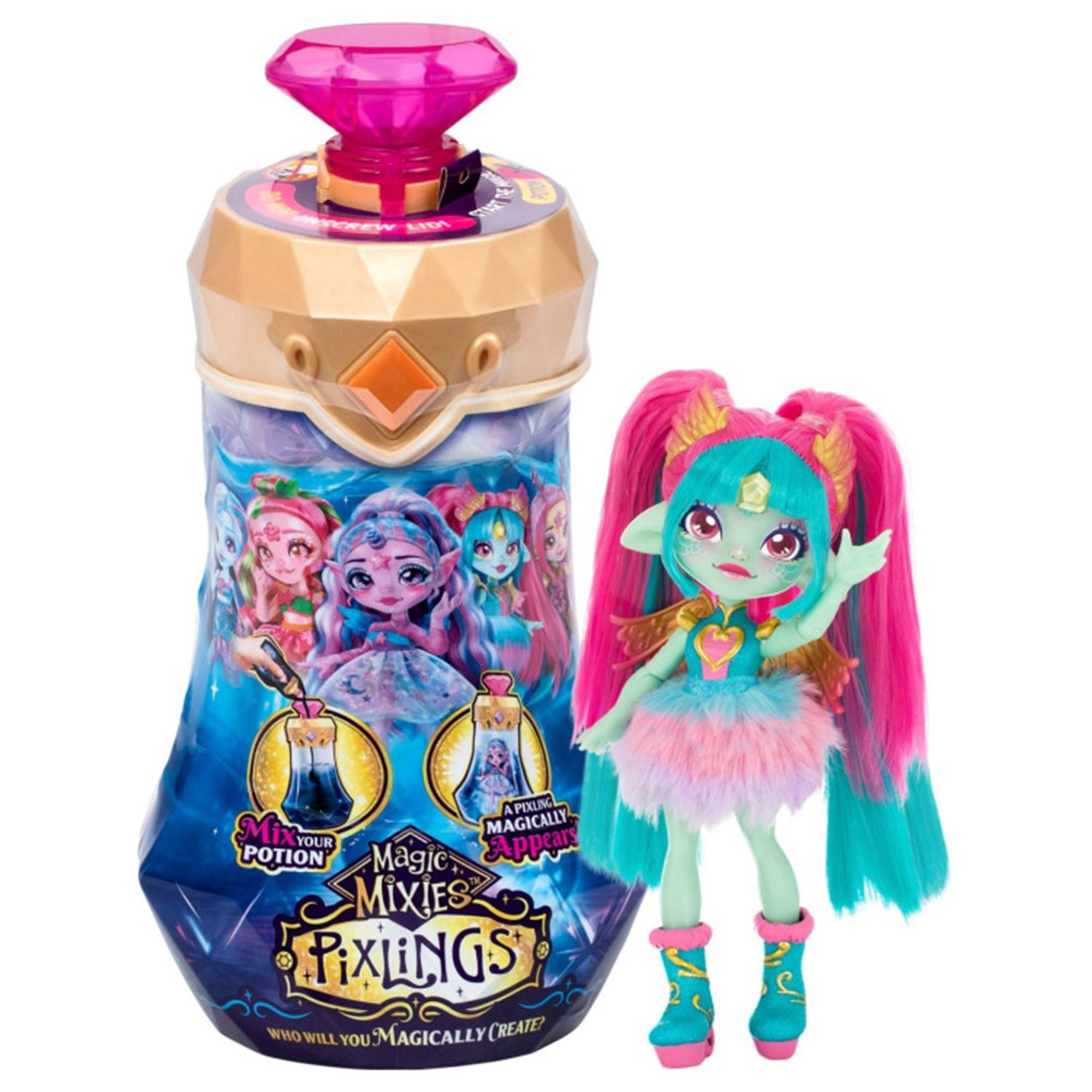 Magisk legesæt fra Magic Mixies med en medfølgende figur og andet tilbehør. Perfekt til timevis af fantasifuld leg. - Indeholder: 1 dukke, 1 magisk beholder, 1 ingredienssæt, 1 outfit. - Tilsæt de magiske ingredienser, sig de magiske ord og se din Pixling-dukke på magisk vis komme frem i flasken. - Dukken er ca. 16 cm høj. - Bevægelig krop. - Saml på alle produkterne i serien. - CE-mærket. - Anbefalet alder: Fra 5 år. - Plastik.
