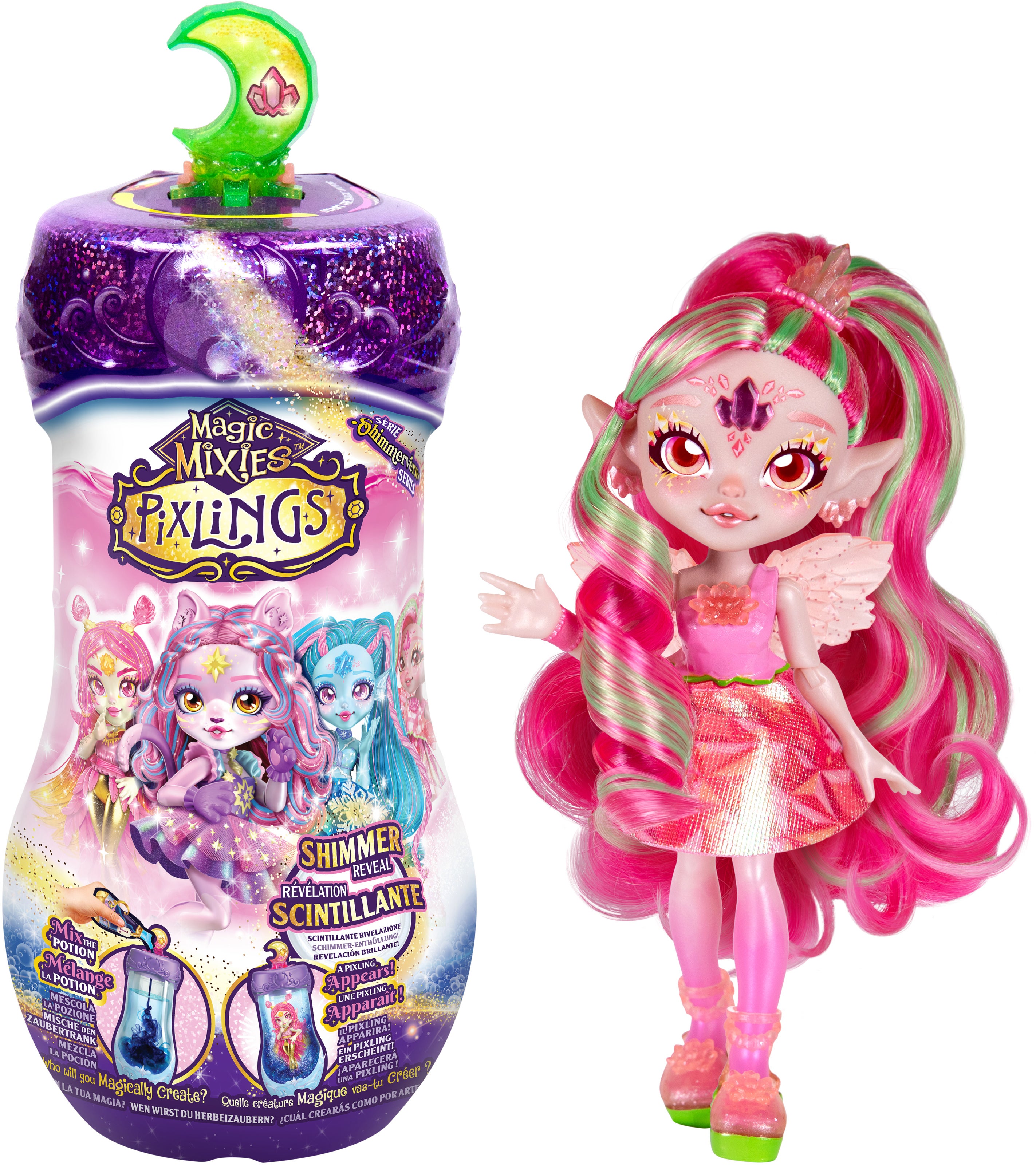 Magisk legesæt fra Magic Mixies med en medfølgende figur og andet tilbehør. Perfekt til timevis af fantasifuld leg. - Indeholder: 1 dukke, 1 magisk beholder, 1 ingredienssæt, 1 outfit. - Tilsæt de magiske ingredienser, sig de magiske ord og se din Pixling-dukke på magisk vis komme frem i flasken. - Dukken er ca. 16 cm høj. - Bevægelig krop. - Saml på alle produkterne i serien. - CE-mærket. - Anbefalet alder: Fra 5 år. - Plastik.