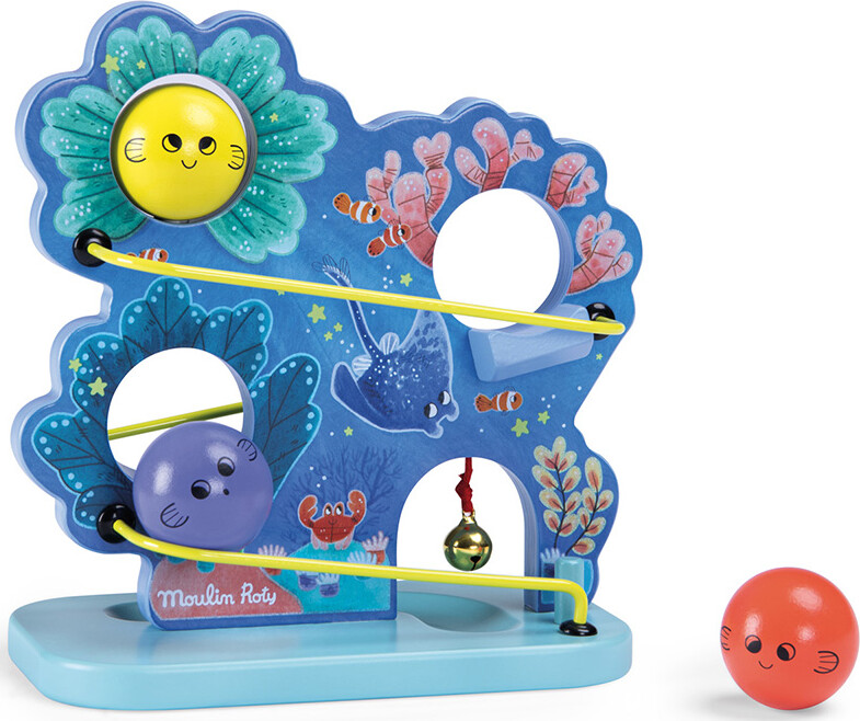 Havtema zig-zag kuglebane med illustrationer af koralrev! Barnet vil elske at rulle kuglerne ned ad...