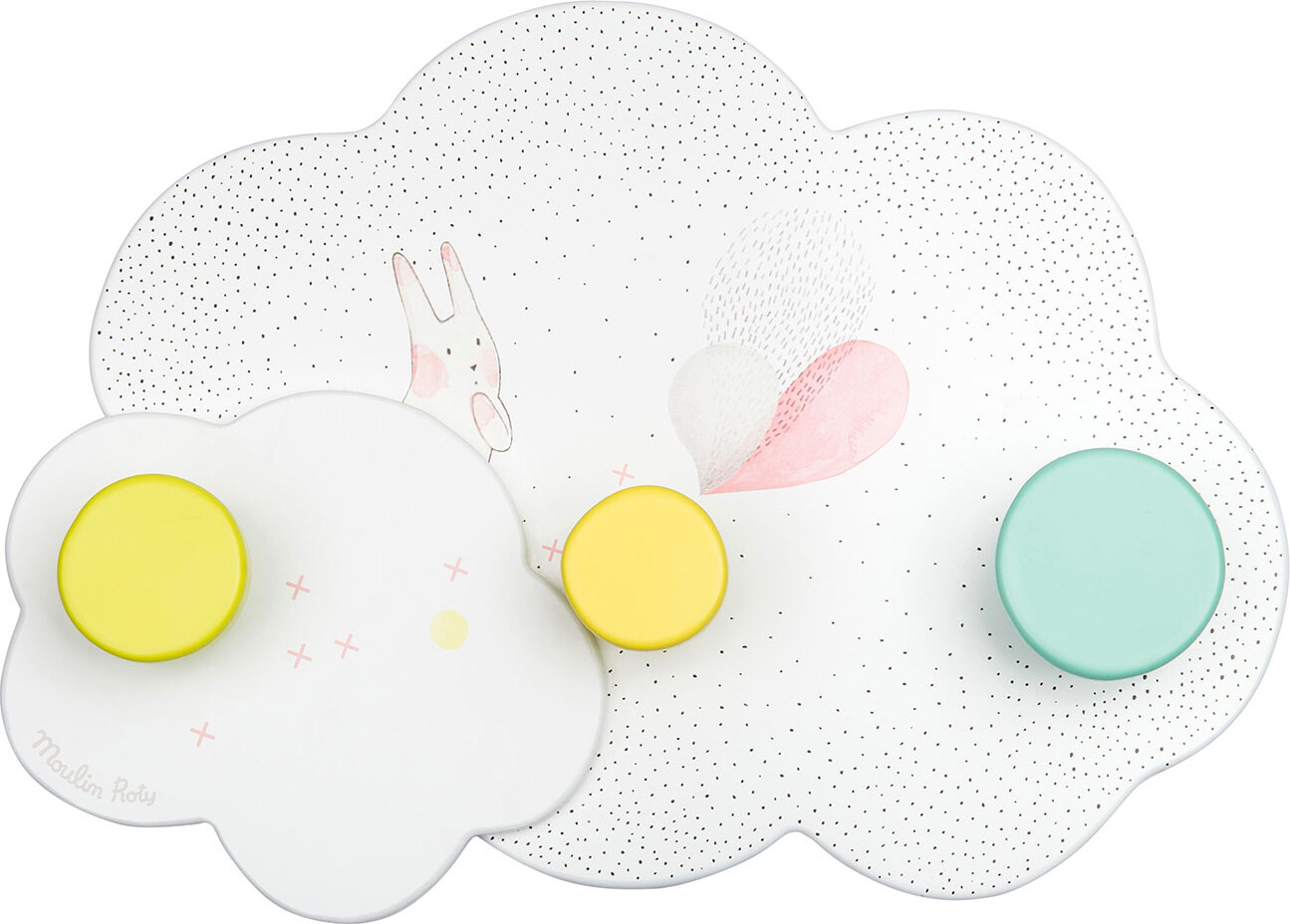 3 runde knager i pastelfarver til børneværelset fra Moulin Roty. De 2 skyer omkranser knagerne,...