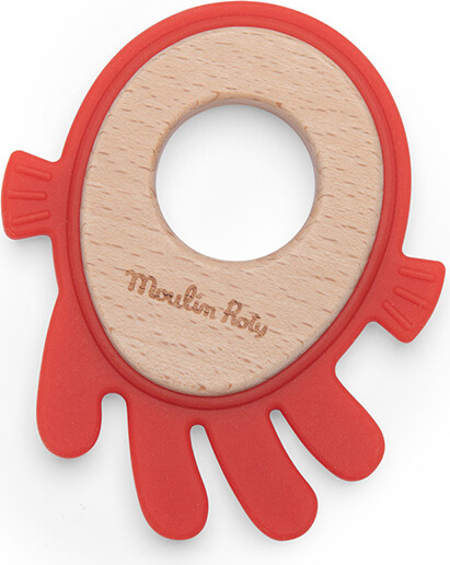 Blęksprutte bidering i trę og silikone er perfekt til baby at lege med eller tygge på....
