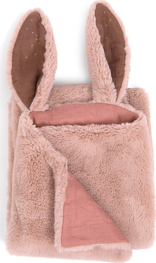 Lyserødt tæppe med to yndige kaninører broderet med skinnende tråde. Tæppet har en naturlig...