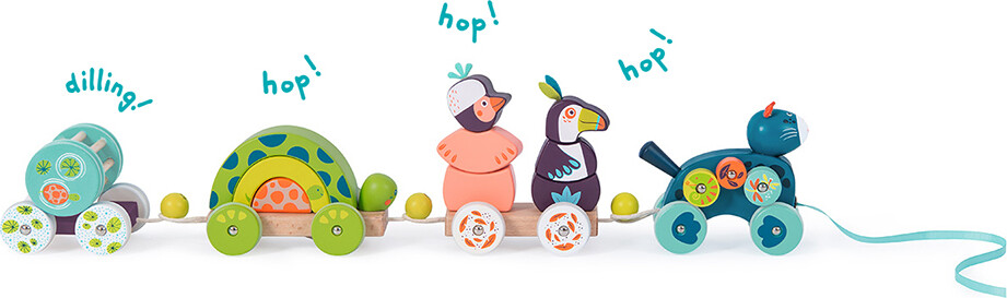 Aktivitetstog - Stort, i træ. Panteren trækker toget og kører sammen med sine venner, tukanen...