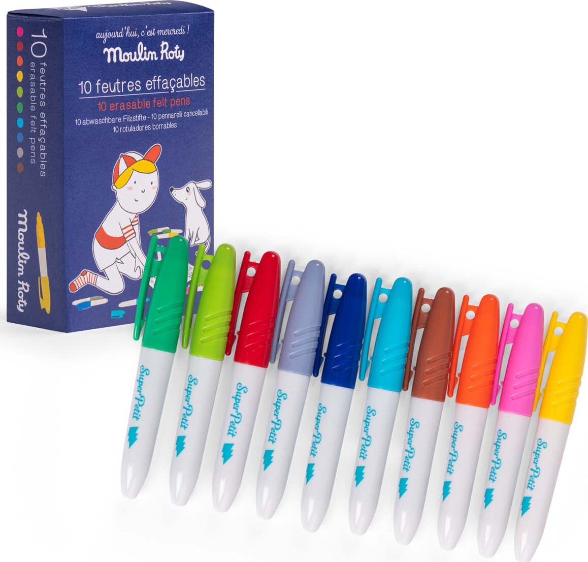 Et sæt med 10 viskbare tuschpenne designet til brug med SuperPetit silikonefarvelægningsmåtter....