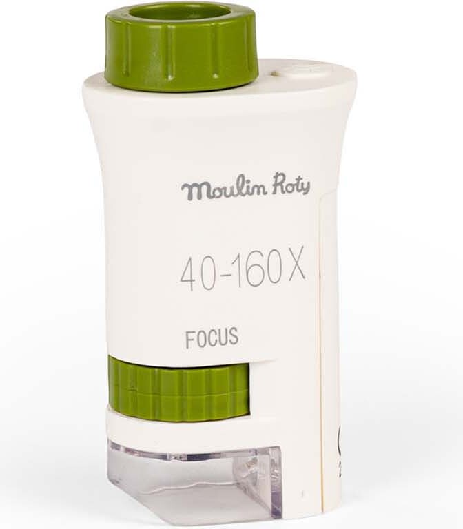 Moulin Roty - Lommemikroskop - Le Jardin Du Moulin er det perfekte værktøj til nysgerrige børn, der ønsker at dykke ned i naturens fascinerende verden. Med dette kompakte lommemikroskop kan små forskere undersøge alt fra insekter til planter, hvilket stimulerer deres nysgerrighed og læring.