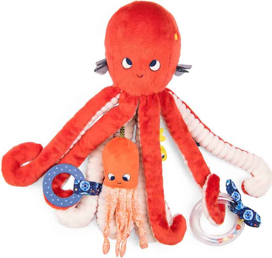 Den bløde og farverige blæksprutte er fremstillet af kvalitetsmaterialer, der sikrer, at den er både sikker og holdbar. Med sine mange teksturer og farver fanger den hurtigt barnets opmærksomhed og opfordrer til nysgerrighed og leg. Det er den perfekte gave til både drenge og piger.