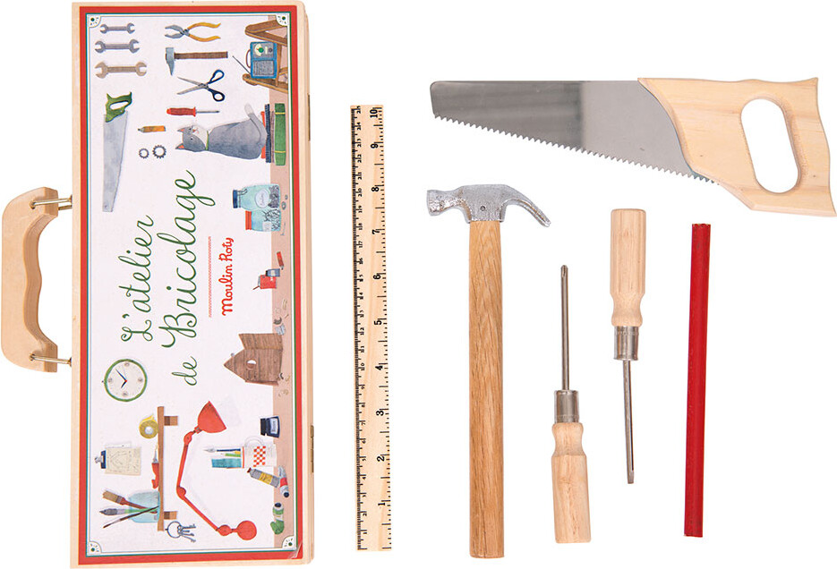 Med Moulin Roty - Værktøjskuffert - Lille kan dit barn lære om håndværk og samtidig styrke sin fantasi. Den perfekte gave til fødselsdage eller særlige lejligheder. Giv dit barn muligheden for at skabe og lege på en sjov og lærerig måde!