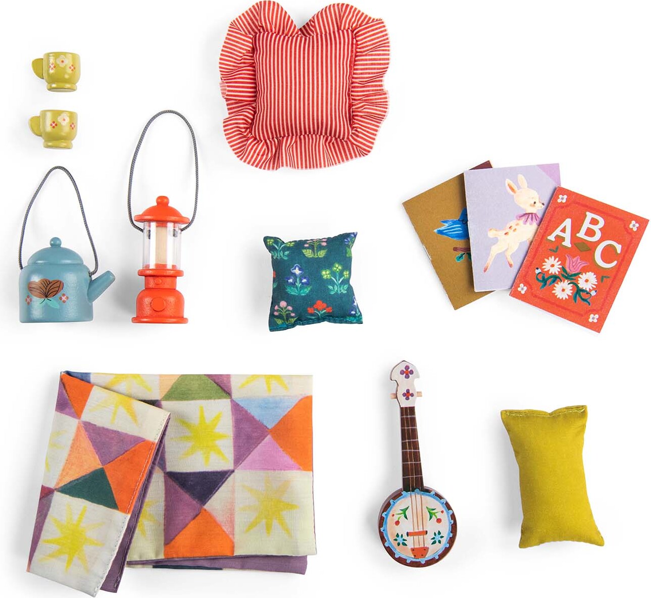 Legesættet inkluderer forskellige tilbehør, der skaber en hyggelig lejrbålssituation. Med detaljer som mini-bål, pinde og skumfiduser kan børnene gætte sig til en magisk aften i naturen, alt imens de udvikler deres evner til at fortælle historier og lege sammen.