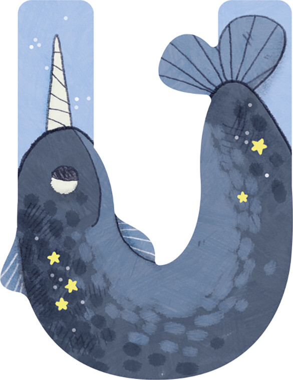 Dyrebogstaver I Træ Til Børneværelset - U - Blå - Moulin Roty