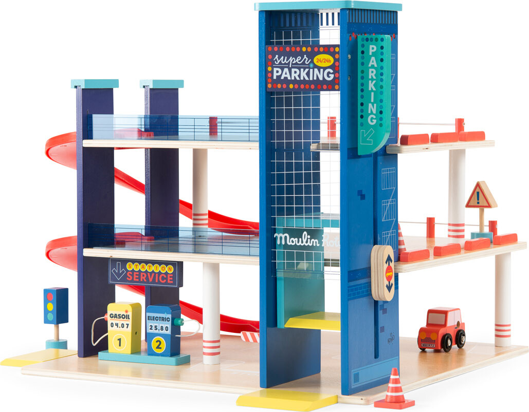 Parkeringhuset fra Moulin Roty er perfekt til både hjemmeleg og i institutioner, og det vil hurtigt blive et yndlingslegested for børnene. Giv dit barn muligheden for at udforske og lære gennem leg med dette fantastiske produkt fra Moulin Roty.