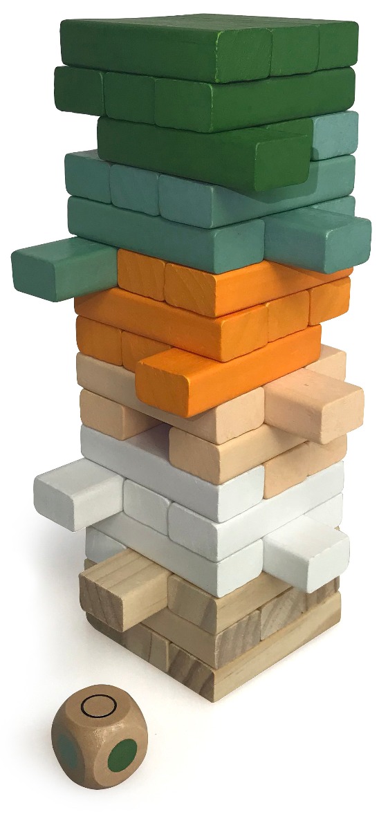 Det skųnne og virkelig morsomme spil, hvor det gęlder om at stable rektangulęre klodser ovenpå hinanden og så fjerne dem igen.Den, der får tårnet til at styrte, er KLODSMAJOR!Fremstillet af FSC-certificeret trę.