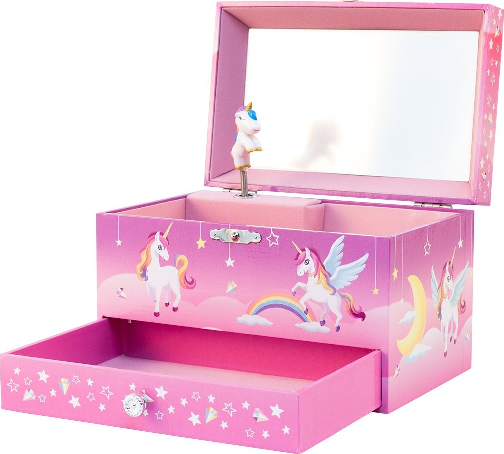 Magni - Smykkeskrin Med Musik, Enhjørning, Stor, Pink - (3920)