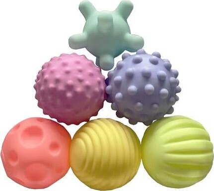 • 6 forskellige bolde med unikke teksturer og farver