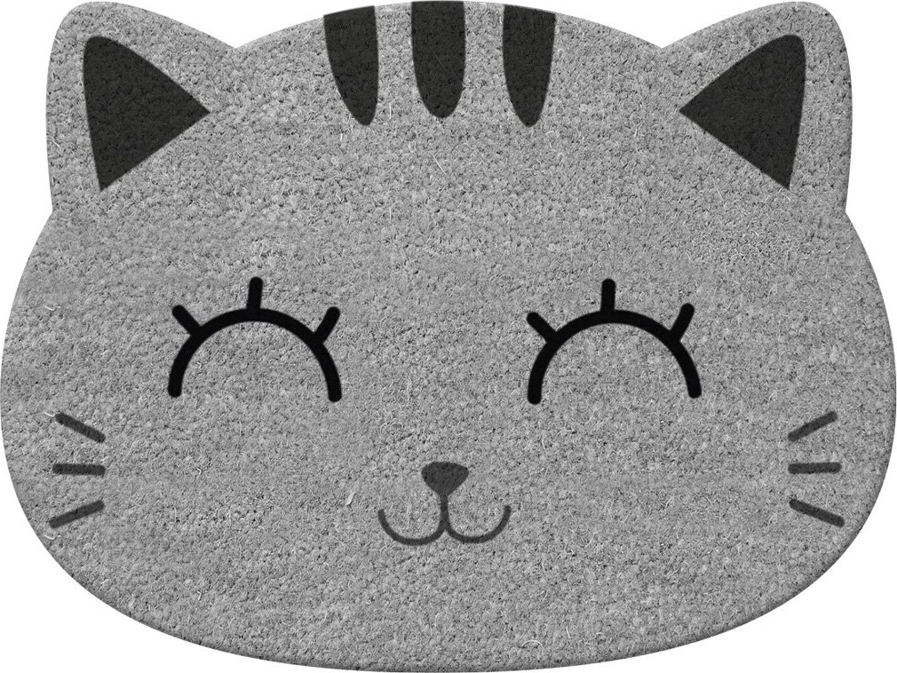 Dørmåtte i form af en sød grå killing. Fremstillet af kokosfibre. Undersiden er PVC og har en...
