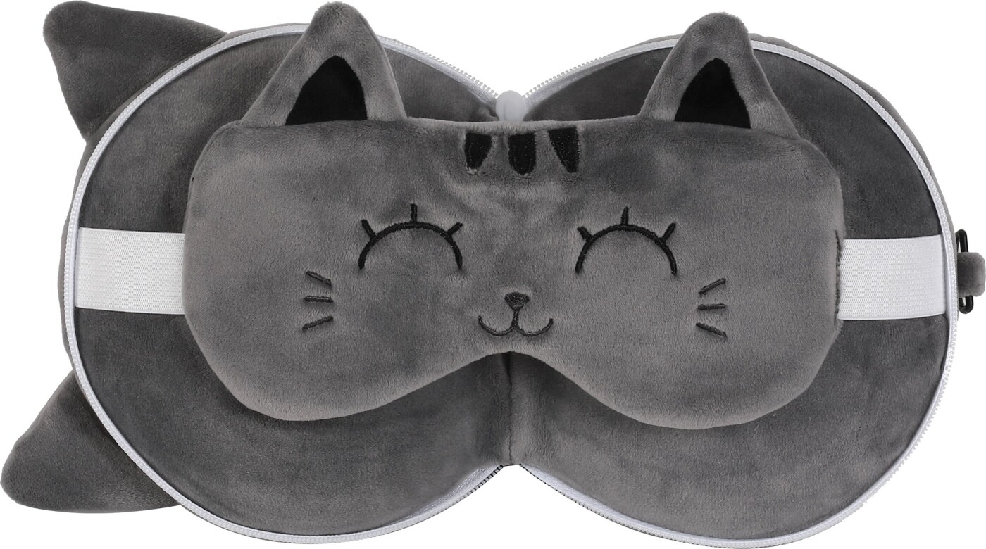 Itotal - Pyntepude Med Sovemaske Til Børn - Grå Kat