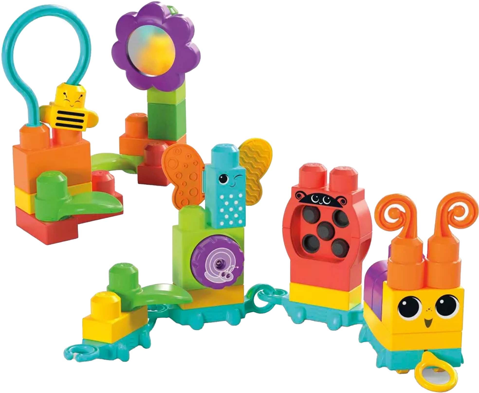 Byggesæt fra Mega Bloks med mange store byggeklodser i forskellige farver. Perfekt til opmuntring af de sensoriske og finmotoriske færdigheder. - Antal dele: 30. - 8 sensoriske funktioner. - Forskellige teksturer. - Trykknapper. - Træklegetøj. - Spejl. - Sommerfuglemotiv. - Farverigt design. - Lette for små hænder at gribe om. - Flere forskellige legemuligheder. - Underholder og stimulerer dit barn. - CE-mærket. - Anbefalet alder: Fra 12 måneder. - Plastik.