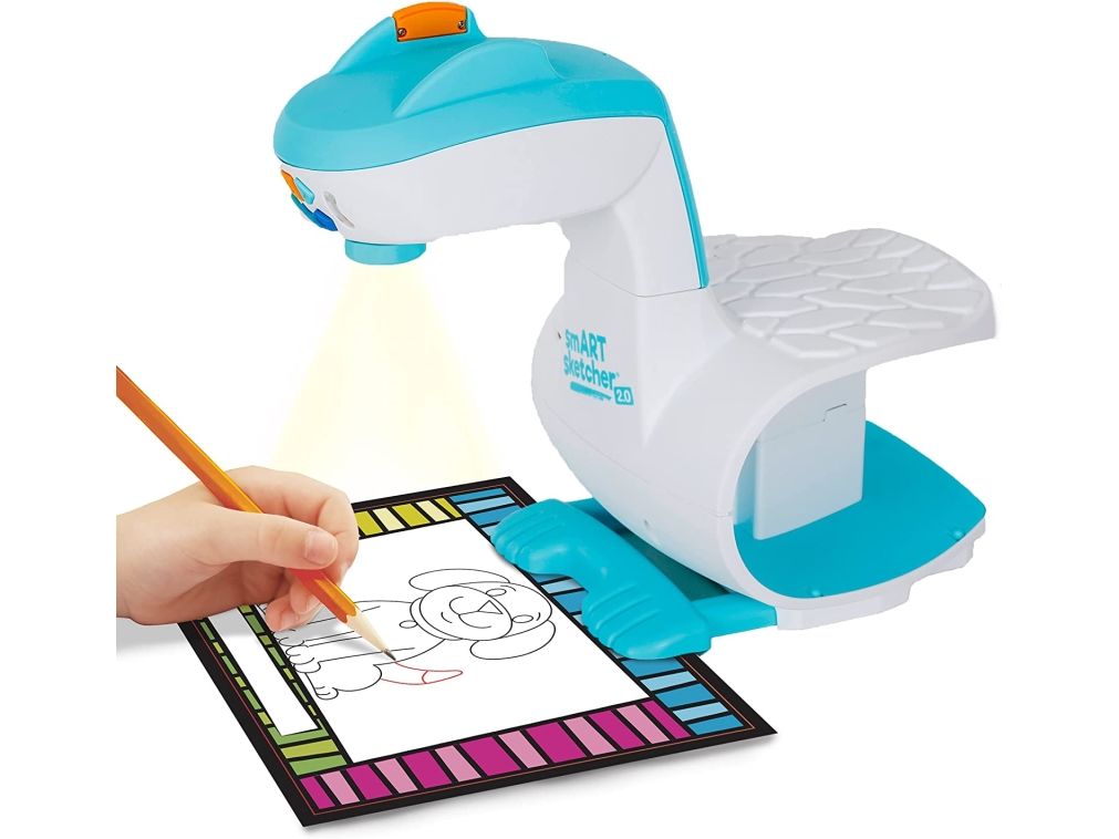 Projektér og skis med Smart Sketcher Projector 2.0. Du kan vælge forinstallerede "lær at tegne"-billeder eller bruge appen til at downloade egne fotos. Projektoren er let at bruge og har interaktiv lyde samt specialeffekter. Lær at tegne på en sjov og kreativ måde. Anbefalet alder: Fra 5 år.
