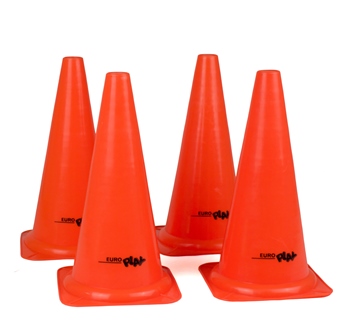Jep - det er lige præcis de store lækre kegler som du kender fra idrætsforeningen og sportshallen.med dem er I klar til mange forskellige lege og boldspil.De måler 22 cm.