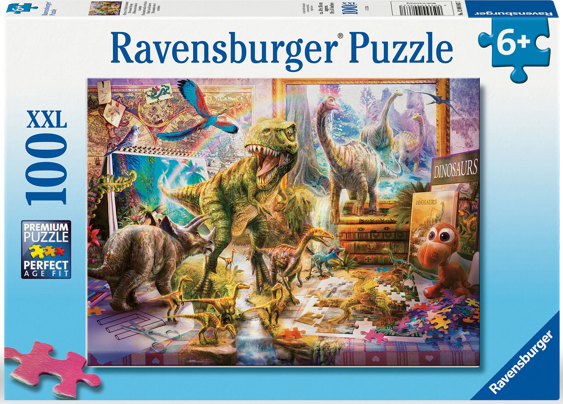 Puslespil fra Ravensburger med et sejt dinosaurmotiv. Perfekt til træning af dit barns koordination og finmotorik. - 100 brikker. - XXL-brikker. - Materialer af højeste kvalitet. - Perfekt til udvikling af finmotorikken. - CE-mærket. - Anbefalet alder: Fra 6 år. - FSC-certificeret karton.