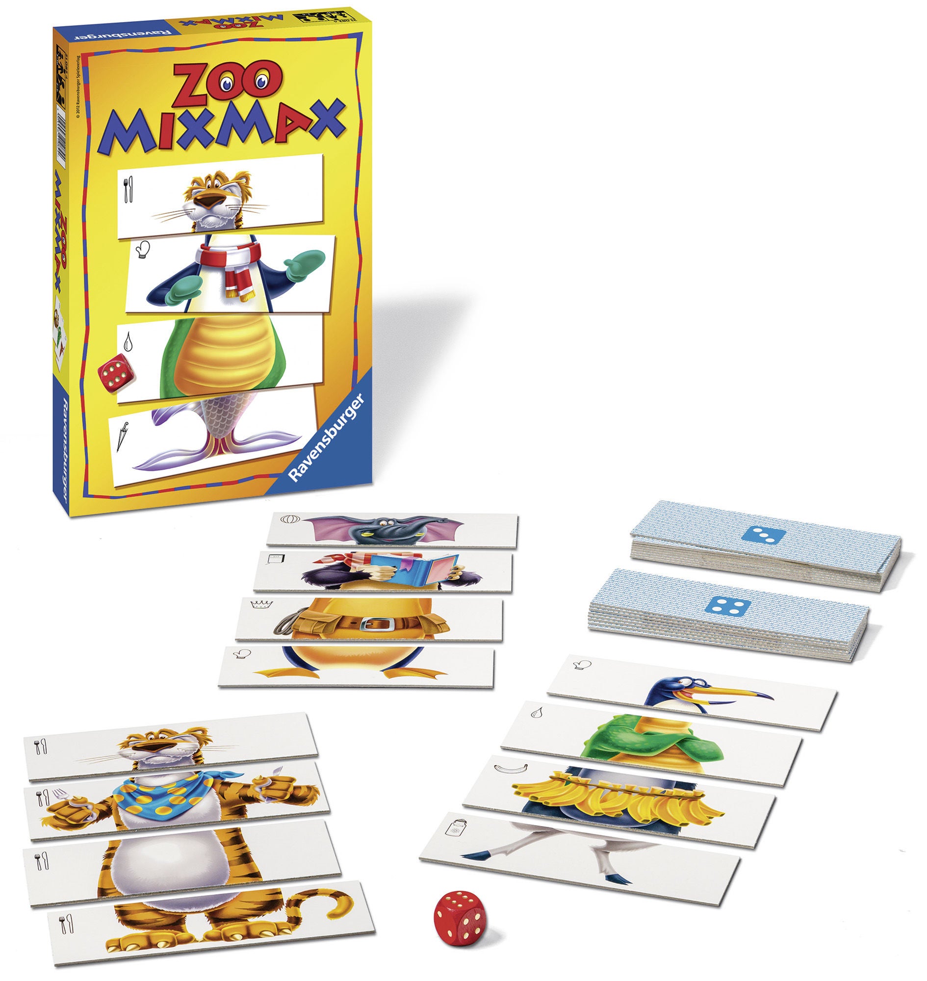 Mix Max fra Ravensburger er et sjovt spil med 60 kort, som du kan bruge til at skabe mere end 50 000 forskellige mere eller mindre skøre dyrekombinationer. Spillet kan spilles på to forskellige måder: Kast terningen for at skabe så mange forskellige dyr som muligt, eller skab dyr ved at vinde kort fra dine modspillere. Anbefalet alder: Fra 5 til 10 år.