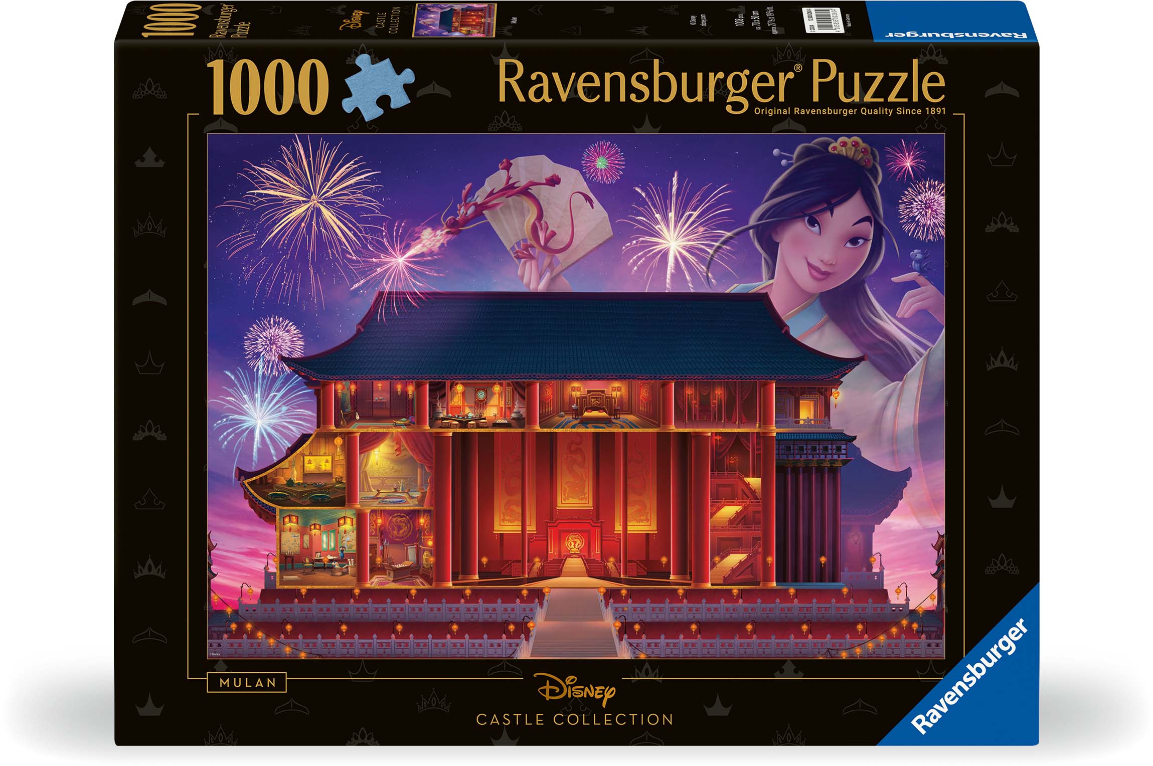 Puslespil fra Ravensburger med et detaljeret motiv fra filmen Mulan. Perfekt for hele familien. - 1000 brikker. - Materialer af højeste kvalitet. - CE-mærket. - Anbefalet alder: Fra 8 år. - FSC-certificeret karton.