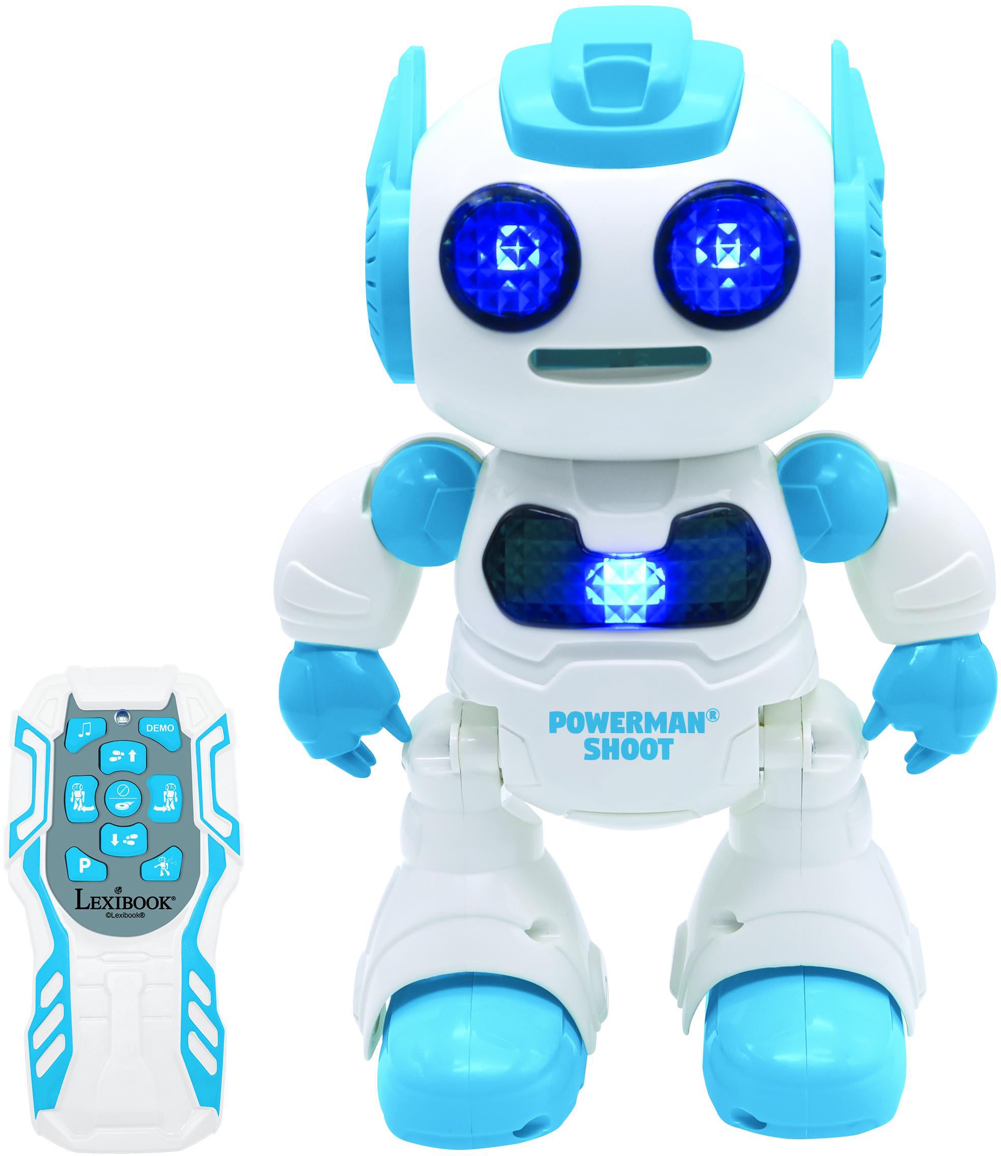 Powerman robot fra Lexibook. Perfekt til mange timers sjov. - Afspiller musik. - Skyder skum-discs. - Lys- og lydeffekter. - Bevægelige led. - Indeholder: 1 robot, 1 fjernbetjening, 12 skiver. - Anbefalet alder: Fra 4 år. - Batterier medfølger ikke.