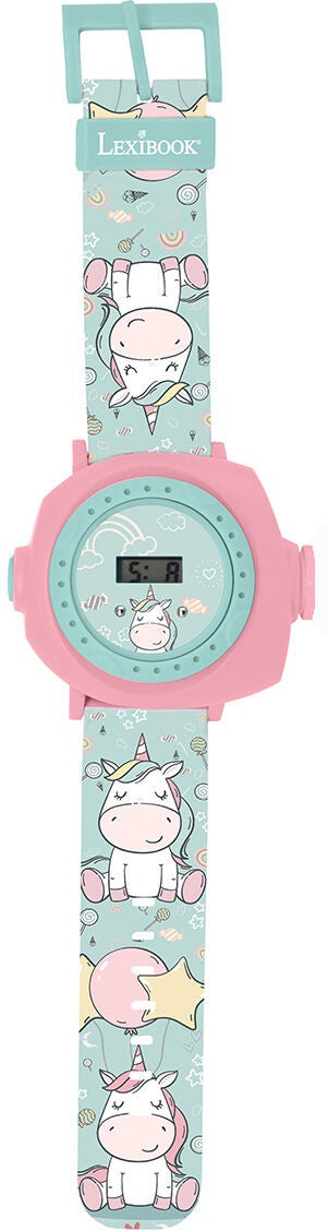 Digitalt projektorur fra Lexibook med et sejt enhjørningetema. Det har 20 billeder at projicere, hvor du vil og en roterende ring til at vælge det billede, der skal projiceres. Perfekt til mange timers sjov. - Justerbar strop. - Visning af tid og dato. - Roterende ring til at vælge det billede, der skal projiceres. - Anbefalet alder: Fra 6 år. - Batteri: 5x AG13/LR 44 (medfølger).