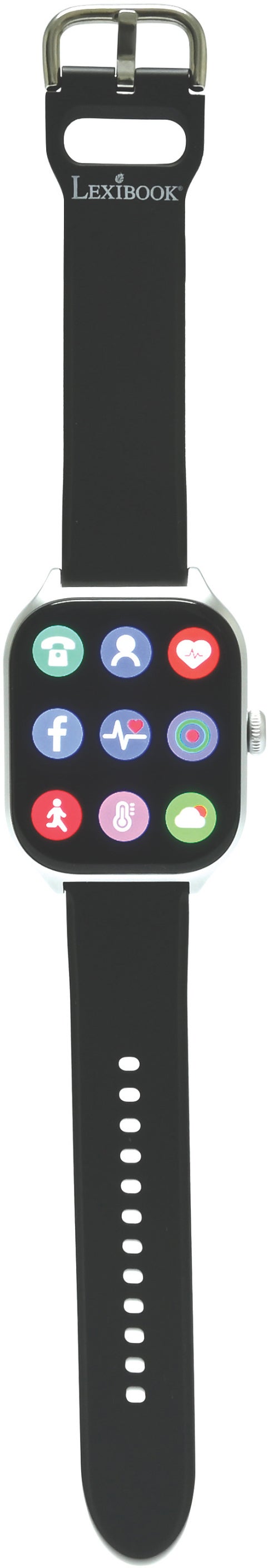 Smartwatch fra Lexibook med mange apps. Perfekt til mange timers sjov. - Funktioner: skridt- og distancetæller, kalorietæller, puls, blodtryk, BT-opkald, BT-musik, overvågning af søvn, påmindelse om opkald, sms- og sociale meddelelser, alarm. - 2-tommers touchscreen. - Bluetooth. - App-notifikationer. - Genopladeligt batteri. - Anbefalet alder: Fra 5 år. - Batterier medfølger.
